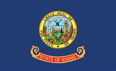 The design of the Idaho State Flag is simple, yet powerful. The flag features a field of blue, symbolizing the loyalty and devotion of the state's residents. Centered on the blue field is the state seal, which is surrounded by a gold band. The seal depicts a miner and a woman, representing Idaho's rich mining history and its commitment to equality. Above the seal, the words "State of Idaho" are proudly displayed in gold letters, proclaiming the state's name to the world.